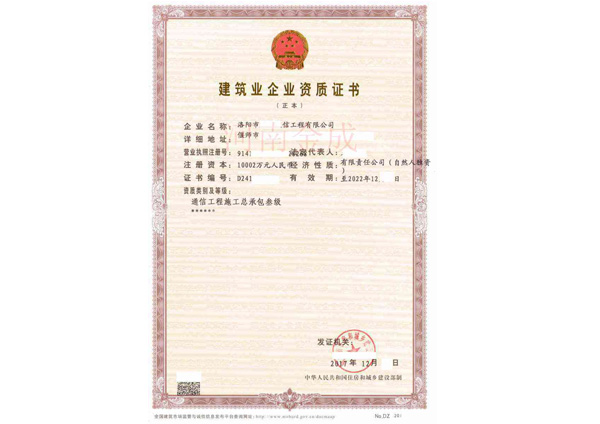 • 建筑業企業資質證書